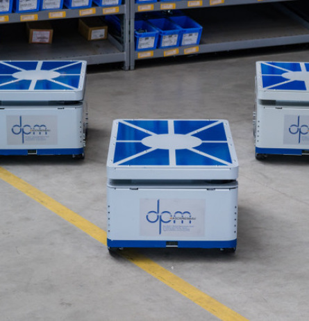 In der Handhabung und in der Logistik sind vielfältige Transportaufgaben mit unterschiedlich großen Komponenten zu erledigen. In diesem Umfeld kann eine neuartige Roboterplattform eingesetzt werden, die auf omnidirektionalen Bewegungen fußt, die mit Hilfe von Mecanum-Rädern realisiert werden. Die einzelnen Roboterplattformen haben für sich gesehen relative geringe Ausmaße (1/4 Europapalette), sie können aber zusammen koordinierte Bewegungen ausführen (Schwarm-Anordnung). Dadurch lassen sich leicht große, ausladende Werkstücke oder Komponenten bewegen. Der omnidirektionalen Antrieb erfordert den geringsten Platz für die einzelnen Fahrtmanöver.