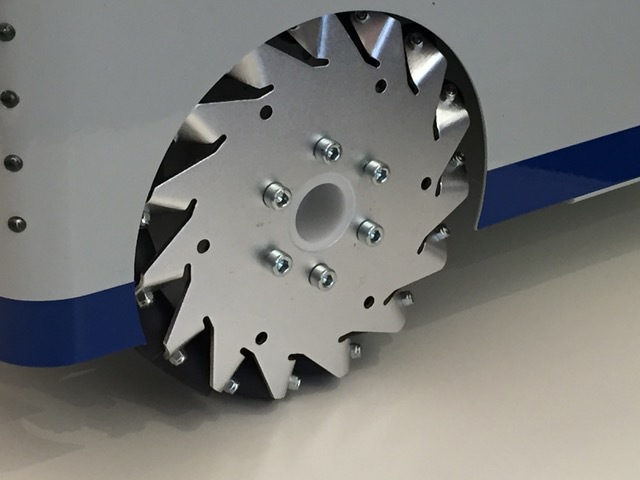 The platforms are equipped with special wheels called mecanum-wheels which are under control of a robotic operating system (ROS). Every platform is powered by a 24 V battery which supports the 4 DC-Motors, the onboard microprocessor (ARM-based) and the electronical equipment. All these features allow for an independent, omnidirectional motion with a minimum gliding.